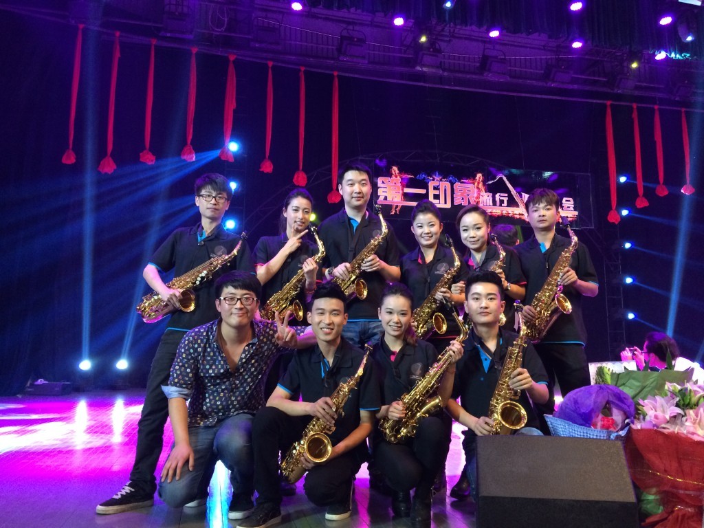 2014年5月7日晚,由器乐教研室精心策划,在院青年教师李辉的指导下,8位选修萨克斯的学生在学院音乐厅上演了《第一印象•流行萨克斯音乐会》。