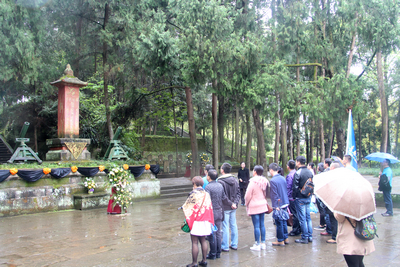 11日清晨,学院34名教师冒着细雨启程,历经四个多小时的车程抵达川陕革命根据地红军烈士陵园。老师们不顾路途疲劳,稍作休整,直奔陵园进行祭扫。在导游的讲解下,重温历史,向烈士纪念碑进献花篮,低头鞠躬并默哀,寄托对革命先烈的哀思。随后,何俐院长、张吉应书记同所有教师一同有序参观红军烈士纪念馆,瞻仰烈士陵园,看到一座座无名墓碑,都倍感脚步的沉重,这里埋葬的不只是一位位英雄烈士,还见证着他们共同的信念。