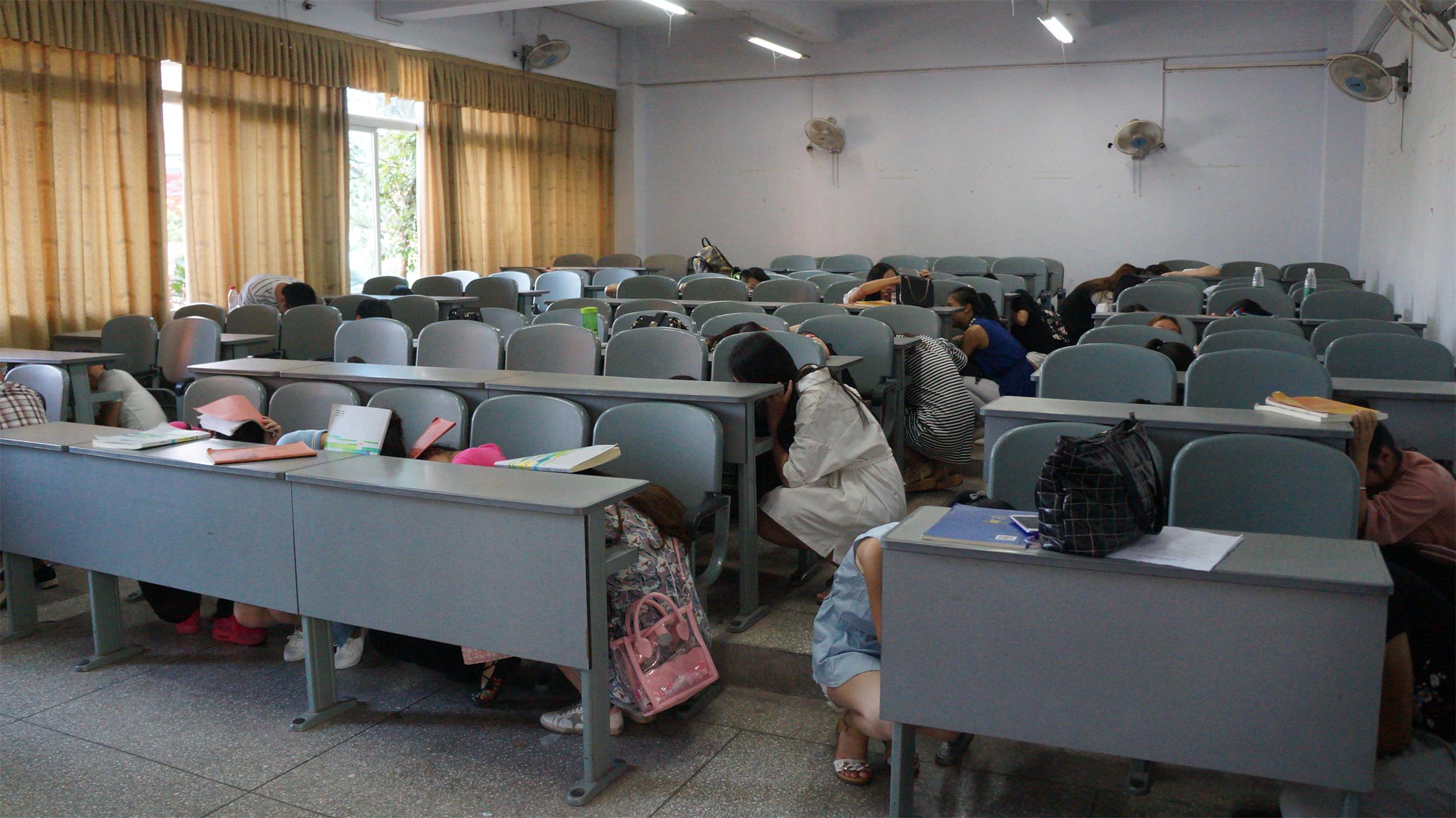 下午16:30,演练正式开始。第一轮警报声响起,疏导员通知大家“地震来了,赶快躲避”,教室里的同学就近蹲在课桌旁边或承重墙附近保护好头部,尽量压低重心保护自己。稍后,第二轮警报声响起,同学们在疏导员的指挥下按原计划疏散路线有序地撤离教室,迅速在音乐广场指定地点集合。整个疏散过程共用时2分19秒,没有发生任何互相推挤或踩踏事故。
