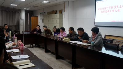 12月7日下午,音演学院学生党支部在四楼会议室隆重召开了2016年下半年组织发展大会。出席本次会议的有党总支副书记冉明,学工办主任杨浩强,辅导员史明娜等领导以及部分党员老师,全院学生党员、预备党员、发展对象、培养对象40余人也参加会议。会议由总支副书记冉明主持。