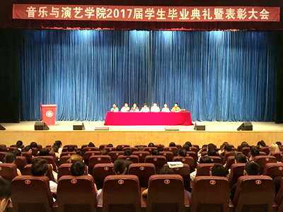 6月21日上午,音演学院2017届学生毕业典礼暨表彰大会在音乐演播厅隆重举行。学院党总支书记阮碧辉、副书记冉明出席大会,大会由学院院长何凤先主持。学院全体教师和2017届全体毕业生及部分修业班学生参加毕业典礼。