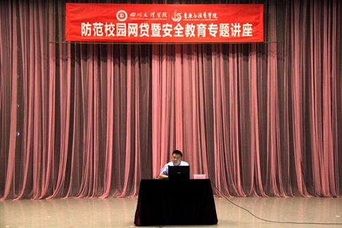 9月29日晚,学院在音乐厅举行防范校园网贷暨安全教育知识专题讲座。学院党总支书记阮碧辉出席讲座,党总支副书记冉明主持讲座。学生工作办公室主任杨浩强担任本次讲座主讲,2015、2016、2017级全体学生聆听了讲座。