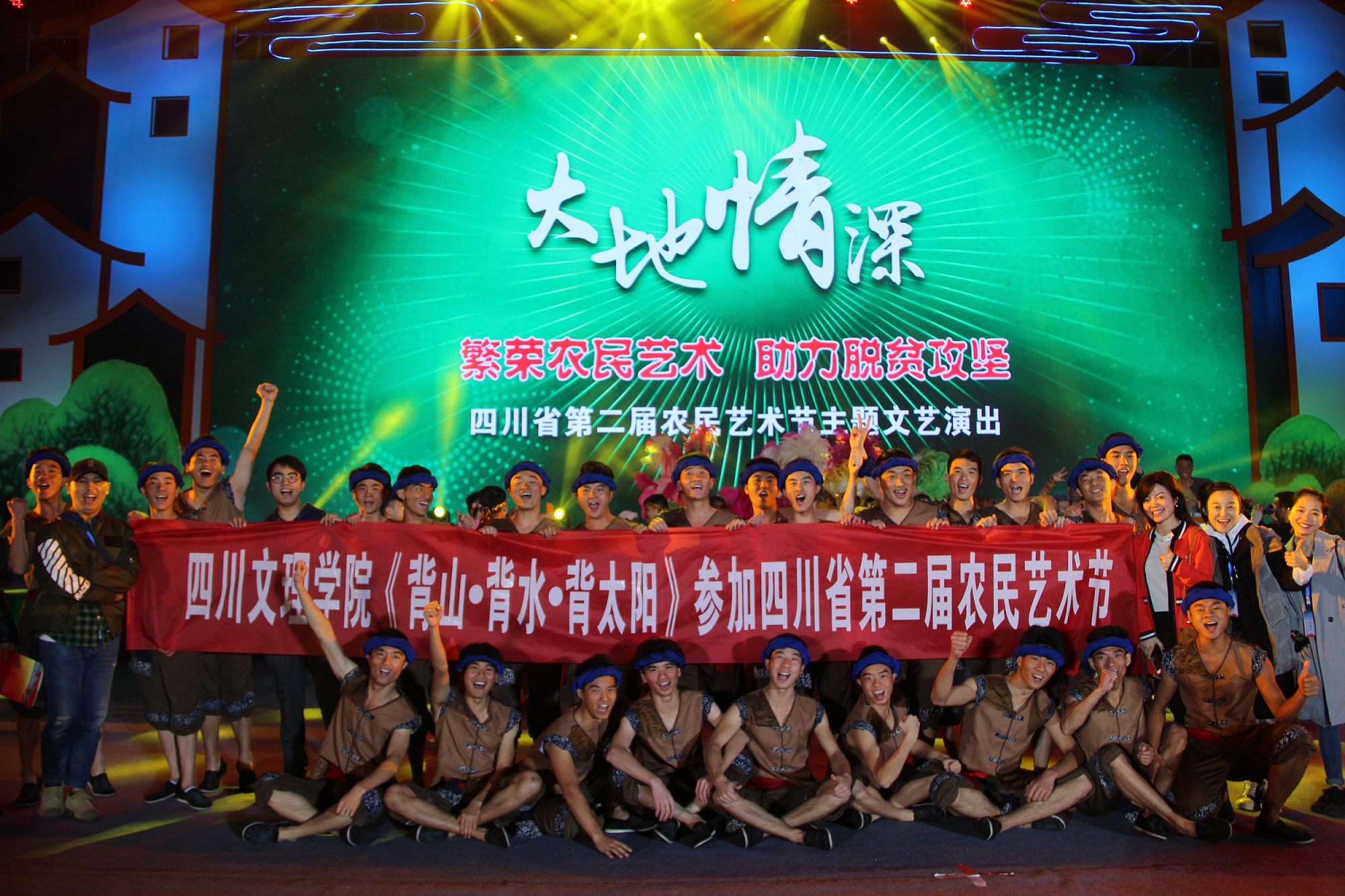 “群星奖”是中华人民共和国文化部为繁荣群众文艺创作,促进社会文化事业的繁荣与发展而设立的全国社会文化艺术政府奖。我院杨荔副院长、文畅主任、刘永建老师、陈俐君老师、彭虹棋老师等七位文理学院教师带领分别来自政法学院、体育学院、智能制造学院、教师教育学院的25位学生,以舞蹈《背山·背水·背太阳》,前往四川省第二届农民艺术节暨“群星奖”比赛。