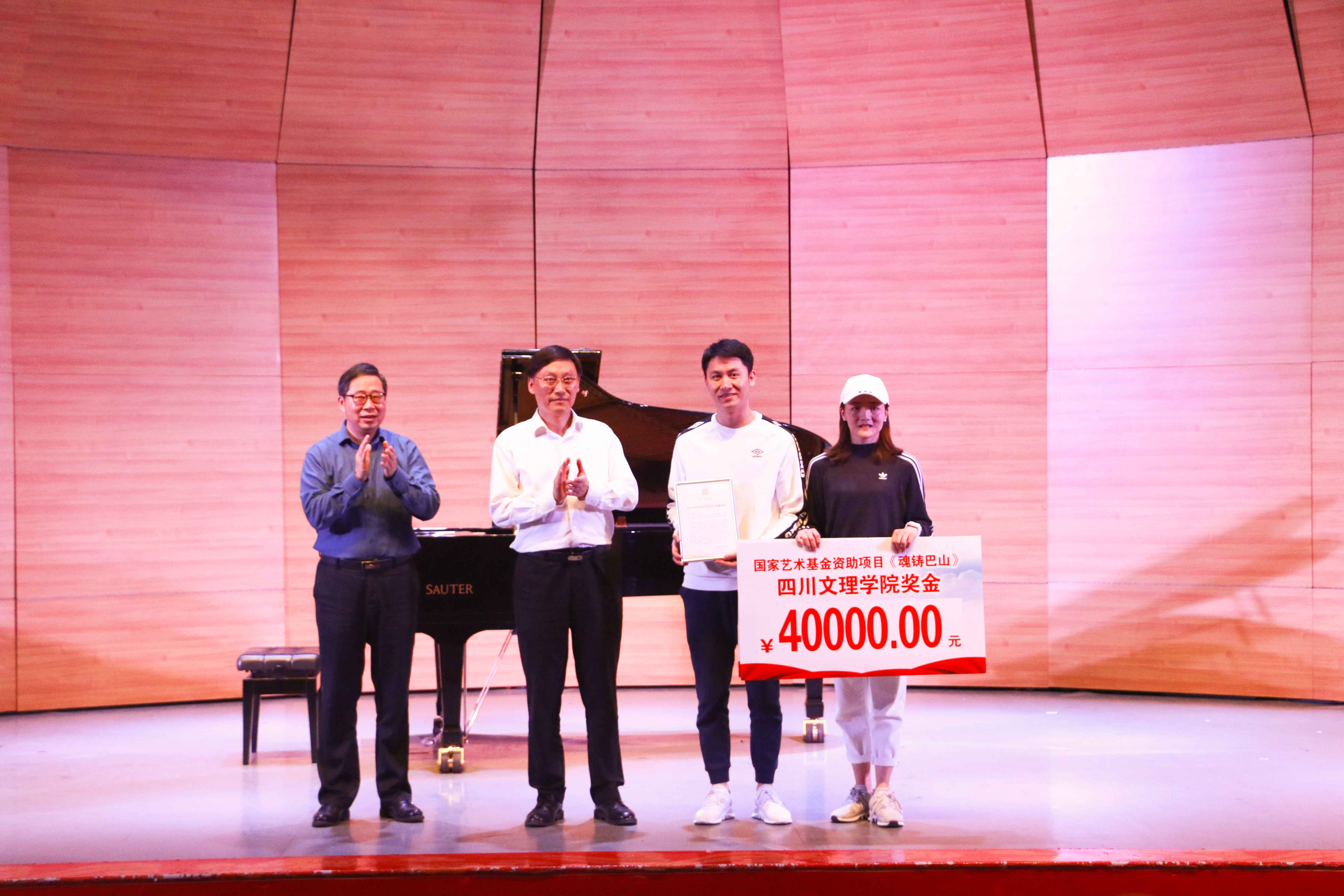 活动由学校副校长徐晓宗主持;学校党委副书记、工会主席侯忠明宣读了《2019国家艺术基金立项通知书》;学校党委书记王成端、校长刁永锋为项目组颁发了证书和奖金。