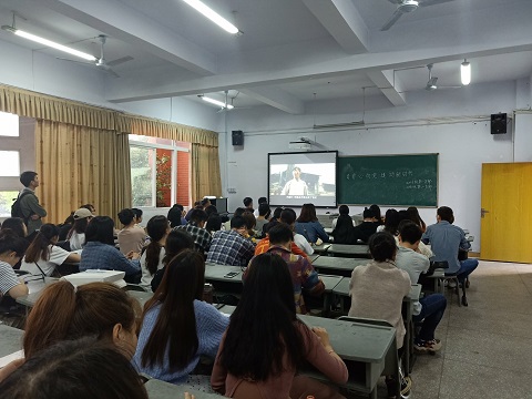 4月21日19:00,大一年级在音乐厅集中参加电影展播活动,在电影播放之前,学院党总支副书记冉明及辅导员老师们为新入团的团员佩戴了团徽,然后由团总支书记罗方芫老师带领新团员进行入团宣誓,老团员重温入团誓词,团员们声音高昂雄浑,充满了团员青年对共青团组织的无限向往和为团组织增光添彩的豪迈激情。最后同学们集体观看了电影《我的1919》。大二、大三年级的各支部开展了学团史树团风主题团组织活动,通过PPT、看电影、演讲等形式向大家讲解中国共青团的光荣历史和五四运动的历史进程,并邀请团员们交流发言。