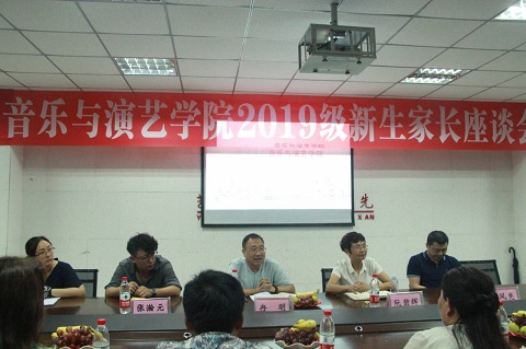 2019年9月10日晚上19:00,音乐与演艺学院在音演楼四楼4037会议室举办了2019级新生家长座谈会,出席座谈会的领导和老师有,学院党总支书记阮碧辉,学院副院长(主持工作)何凤先,学院副书记兼副院长冉明以及2019级专兼职辅导员,会议由党总支书记阮碧辉主持。