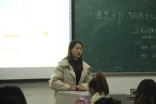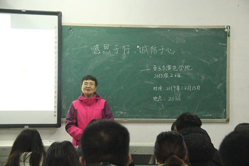 为加强学生感恩诚信教育,12月15日晚,音乐与演艺学院分别在音演楼教室和博文楼124教室开展了“感恩于心、诚信于行”主题班会活动。学院党总支书记阮碧辉亲临班会并讲话。