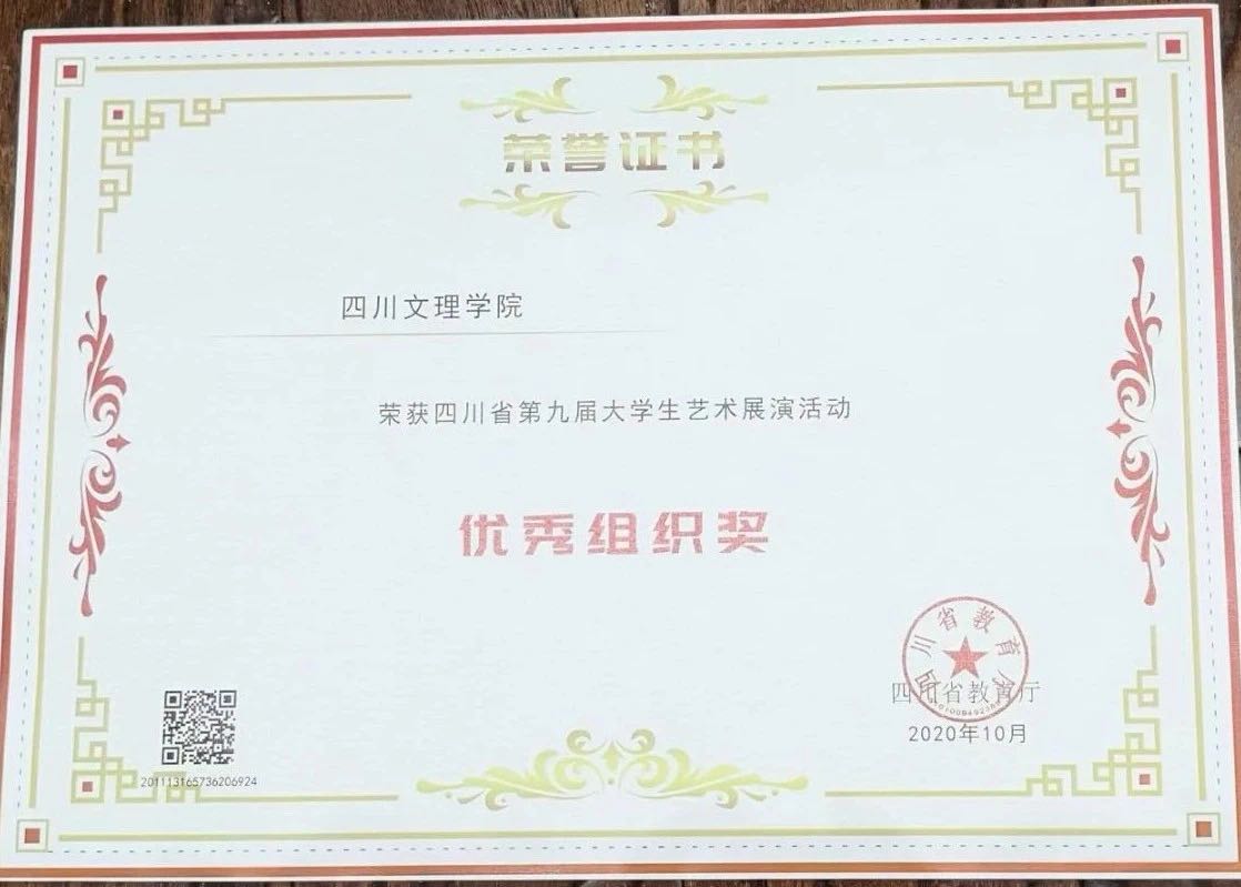 四川文理学院获得四川省第九届大学生艺术展演省级优秀组织奖