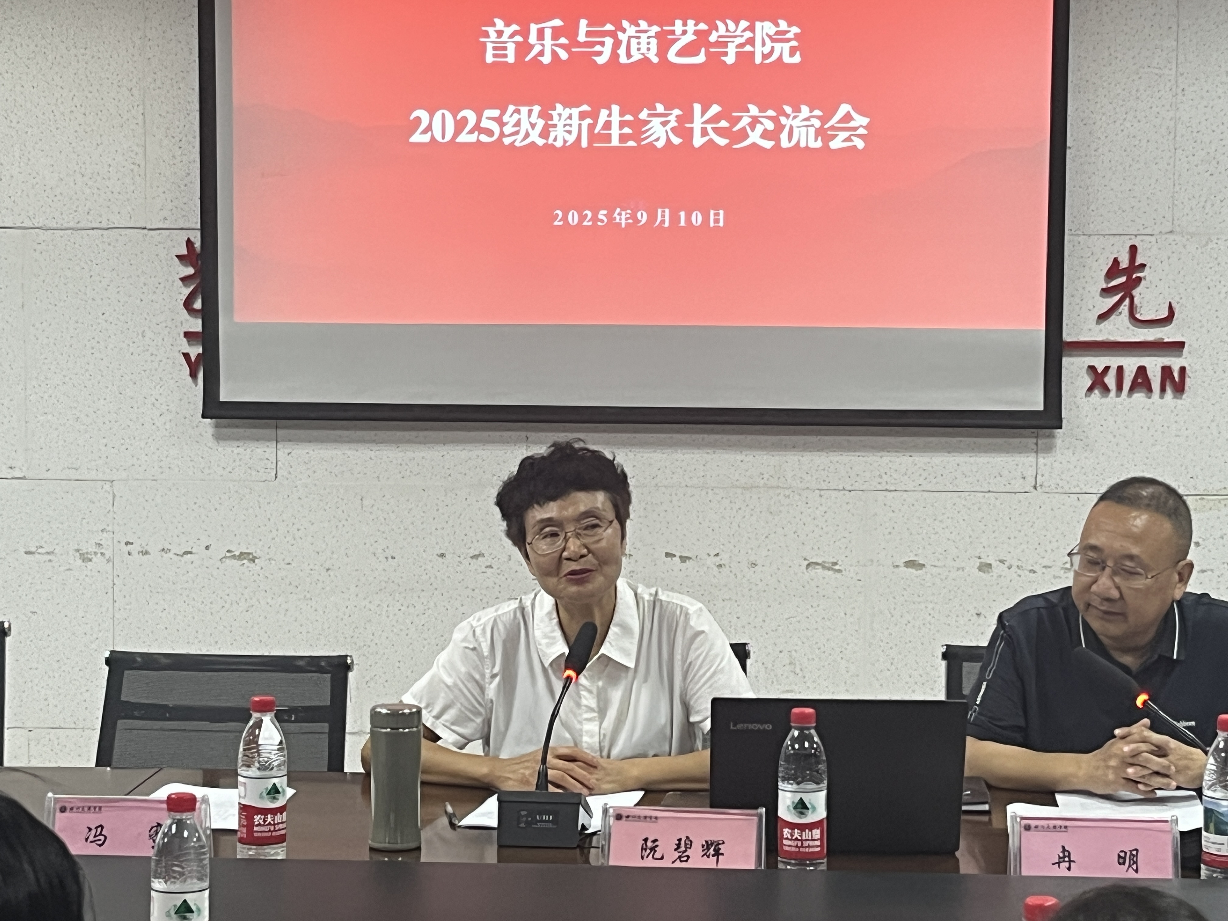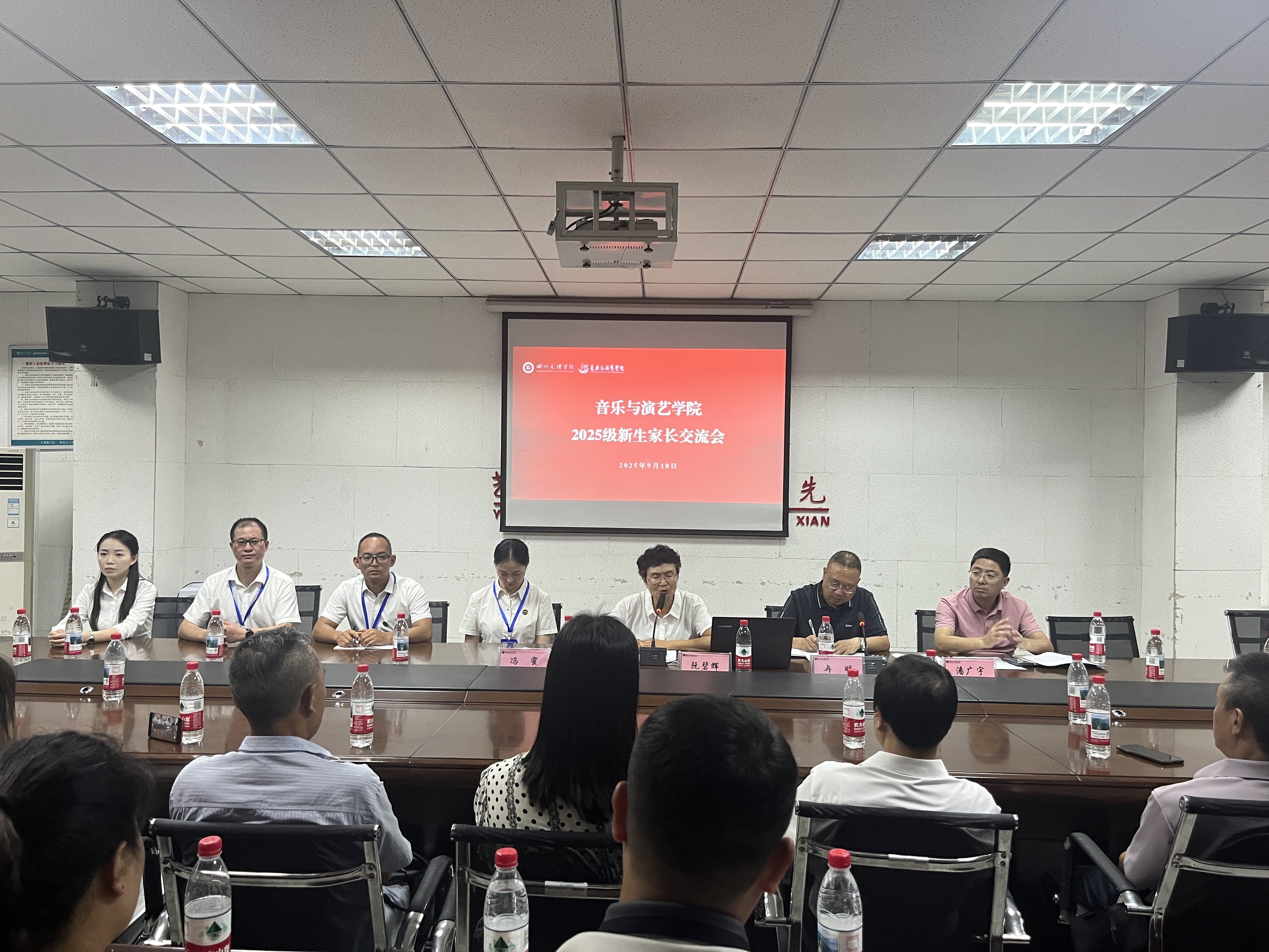 为搭建起学院与家长间的沟通渠道,助力2025级新生更好地开启大学生活,音乐与演艺学院于2025年9月10日晚在音演大楼四楼会议室举办了2025级新生家长交流会。学院党委书记阮碧辉、党委副书记冯蜜、副院长冉明、潘广宇和辅导员祝成毅、唐清雄、李欣宸共同出席此次活动,会议由副院长冉明主持。