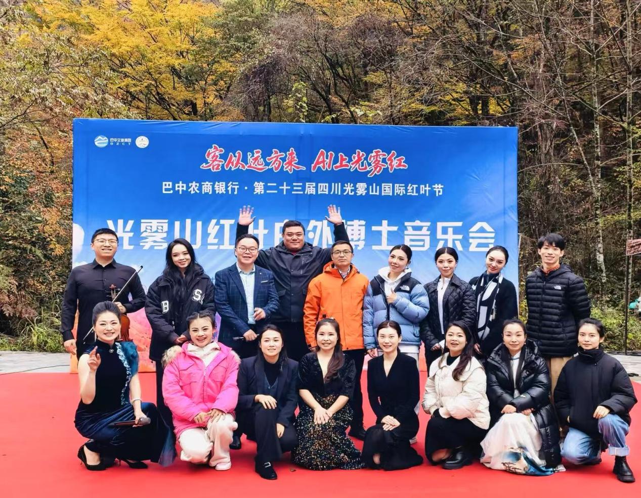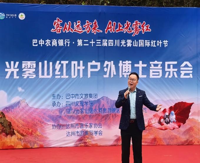 2025年11月5日上午,以“红叶为媒,艺术为桥,促进文旅深度融合”为主题的光雾山红叶音乐会在四川省巴中市光雾山-米仓山旅游景区成功举办。本次活动由巴中文旅集团主办,四川光雾山诺水河旅游发展公司承办,四川文理学院、达州市音乐家协会与达州市欧美同学会协办。