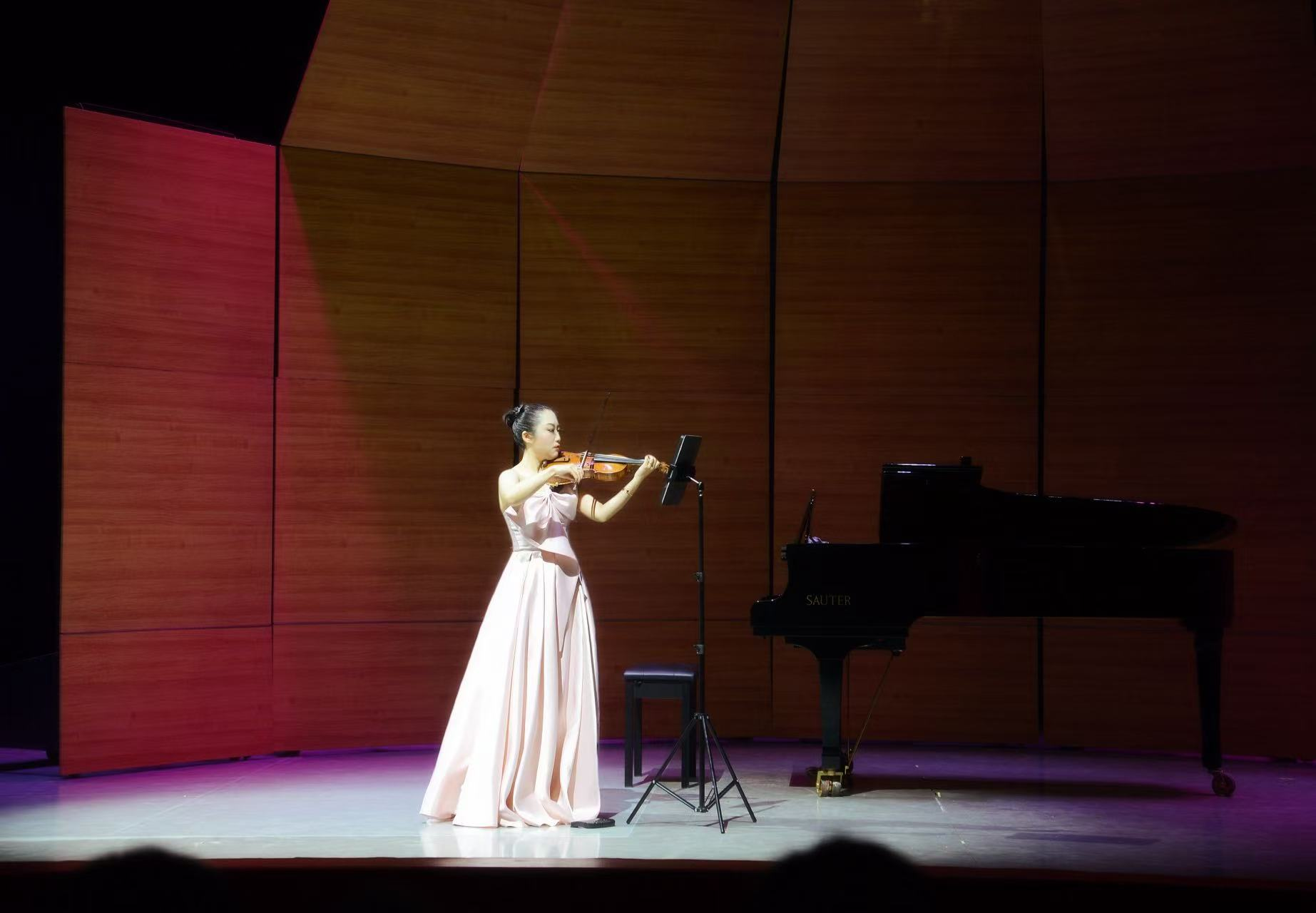 本场音乐会演奏形式丰富,涵盖小提琴独奏、钢琴小提琴二重奏,以及钢琴三重奏的室内乐形式;所选曲目覆盖东西方音乐作品,跨越浪漫主义至二十世纪。音乐会以德沃夏克旋律清新、气质淡雅的《四首浪漫小品》开篇,继而演出伊萨伊《无伴奏小提琴奏鸣曲》第二首,以高密度技巧与强烈戏剧张力凸显独奏魅力。柴可夫斯基《纪念一个亲爱的地方》用歌唱性线条呈现深情回忆,《花儿为什么这样红》则以更具华彩的写法展现新疆民歌的明亮色彩。