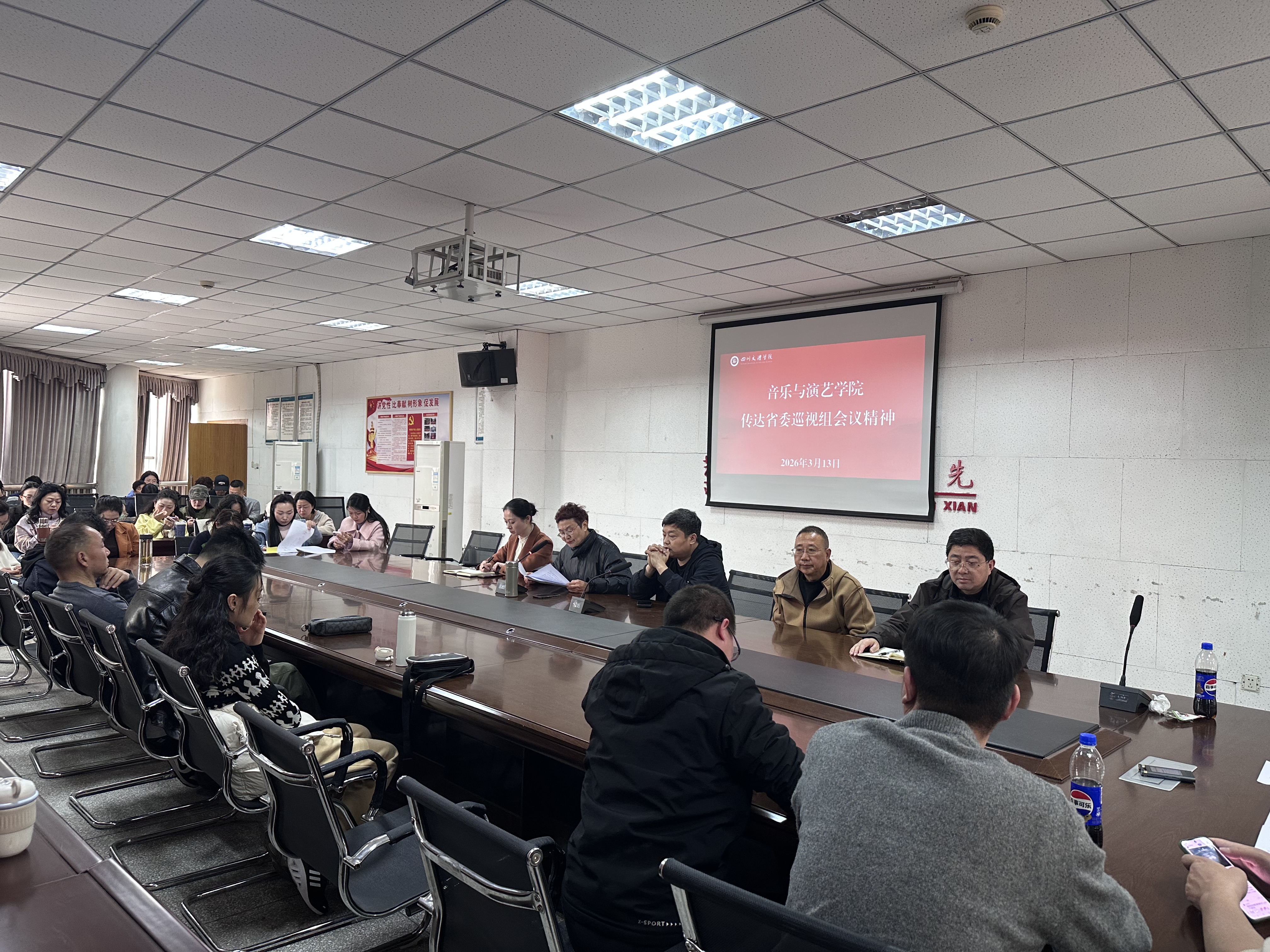 2026年3月13日,我院召开专题会议,传达学习省委巡视组进驻学校开展巡视工作的会议精神。会议由学院党委书记阮碧辉主持,学院全体教职工参加会议。