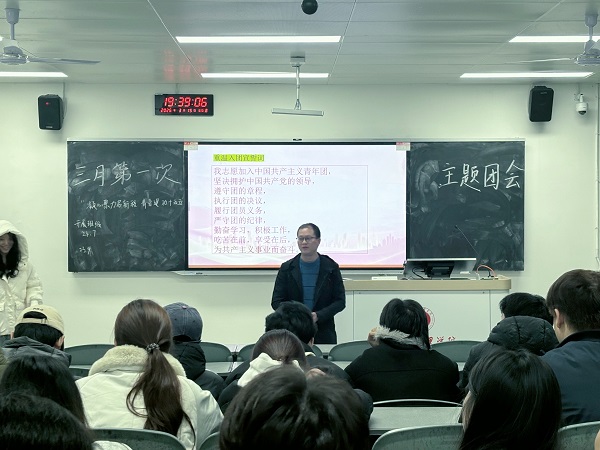 团会伊始,各班团支书围绕“十五五”规划、全国两会精神以及青年发展相关政策开展专题宣讲,深入且透彻地解读了新质生产力、科技创新、青年成长等核心内容。随后,各支部以“我的十五五·青春怎么干”为主题展开交流研讨,团员青年结合专业学习与实践经历,畅谈理想、分享感悟、凝聚共识,进一步明确了青年学子的责任与方向。团会结尾,全体团员面向团旗重温入团誓词,共同宣读青春建功倡议,强化了团员的身份认同与时代使命意识。