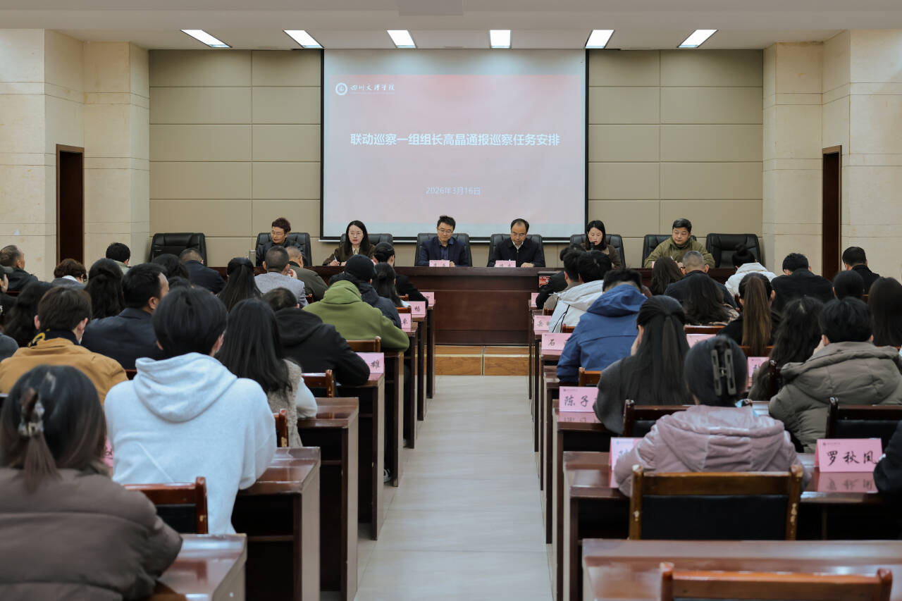 根据学校二届党委第五轮巡察暨省委巡视联动巡察工作统一部署,2026年3月16日,联动巡察一组巡察音乐与演艺学院党委工作动员会在弘德楼一楼会议室召开。驻校纪检监察组组长、党委副书记、纪委书记、巡察工作领导小组常务副组长帅胤出席会议并作动员讲话,联动巡察一组组长高晶通报了巡察任务安排。音乐与演艺学院党委书记阮碧辉主持会议并作表态发言。