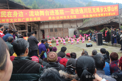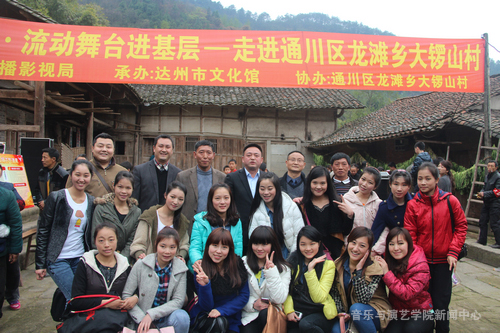 为了巩固和继续开展党的群众路线实践教育活动,服务地方文化事业。2014年3月24日上午,音乐与演艺学院与实习基地达州市文化馆携手在通川区龙滩乡大罗山村开展了“文化惠民在身边、流动舞台进基层—走进通川区龙滩乡大罗山村”文艺活动。学院院长何俐、党总支副书记(主持工作)张吉应、学院副主任何凤先、市文化馆馆长方江、学院办公室主任杨桂梅以及由毕业学生代表、实习学生、在校学生组成的演员队伍近50人参加了此次演出活动。